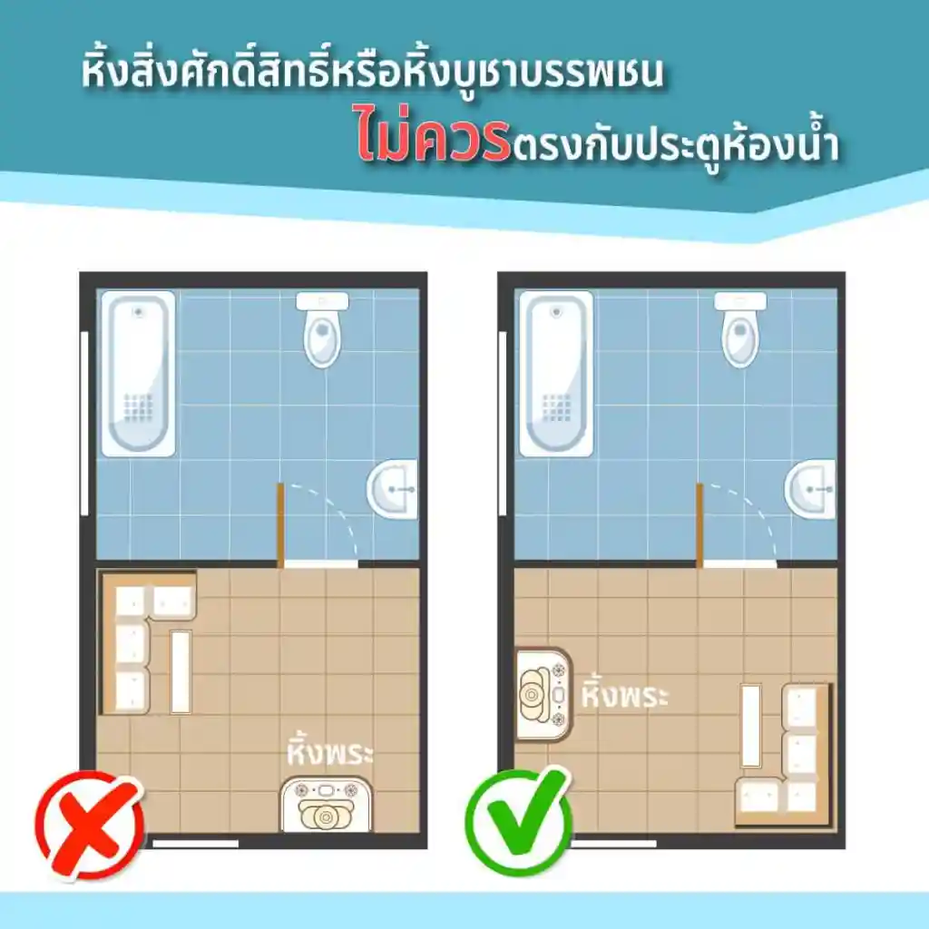 1. หิ้งสิ่งศักดิ์สิทธิ์หรือหิ้งบูชาบรรพชนไม่ควรตรงกับประตูห้องน้ำ